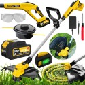- Wyposażenie: akumulator, ładowarka, śrubokręt, kółka do prowadzenia podkaszarki, śrubki montażowe, okulary ochronne, głowica tnąca, osłona głowicy, instrukcja obsługi w języku polskim