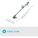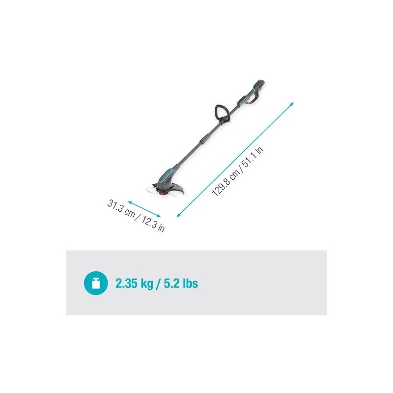 Z wymiarami 313 mm szerokości i 1298 mm długości, Gardena PowerTrim 30 jest kompaktowa i łatwa w manewrowaniu. Dzięki temu możesz dotrzeć do trudno dostępnych miejsc w ogrodzie, co czyni ją niezwykle funkcjonalnym narzędziem.