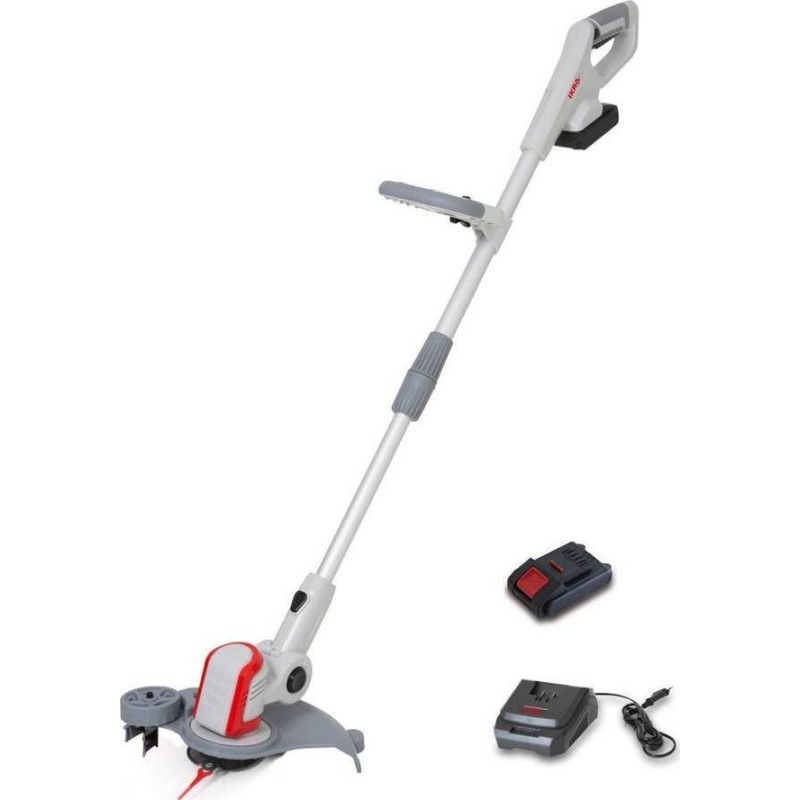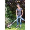 Szerokość cięcia 25 cm Moc 20VW System tnący głowica z ostrzami Max średnica żyłki ostrze nylonowe Waga z akumulatorem 2,3 kg Regulacja długości tak Regulacja uchwytu tak