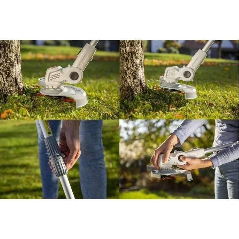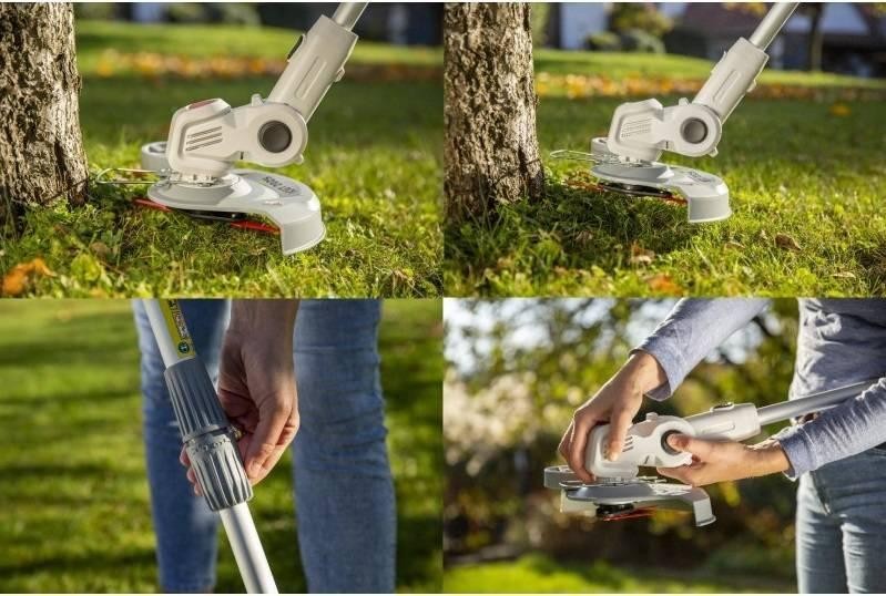 - Podcinarka ma regulowaną długość i kąt głowicy roboczej.