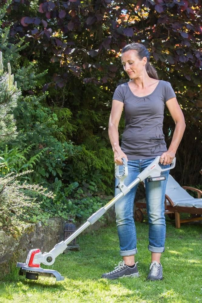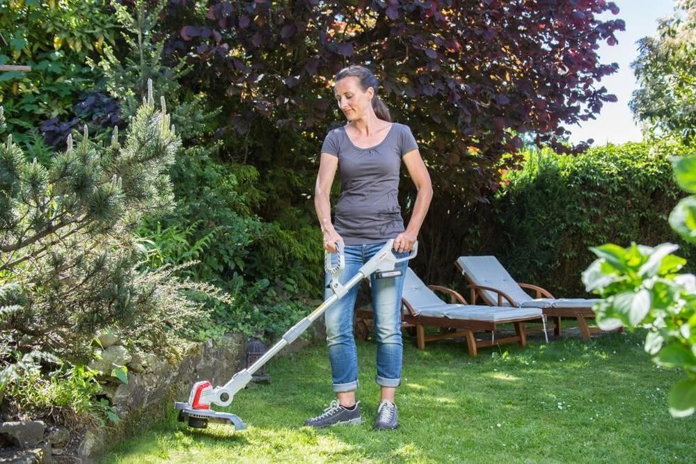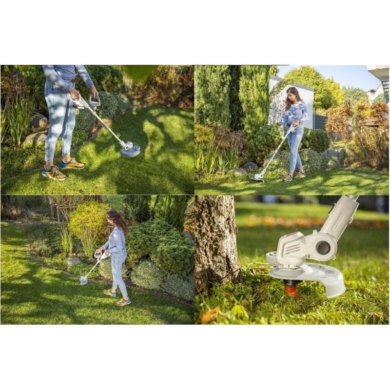 - Rolka prowadząca i obracany górny uchwyt umożliwiają dokładne i wygodne przycinanie krawędzi trawnika.