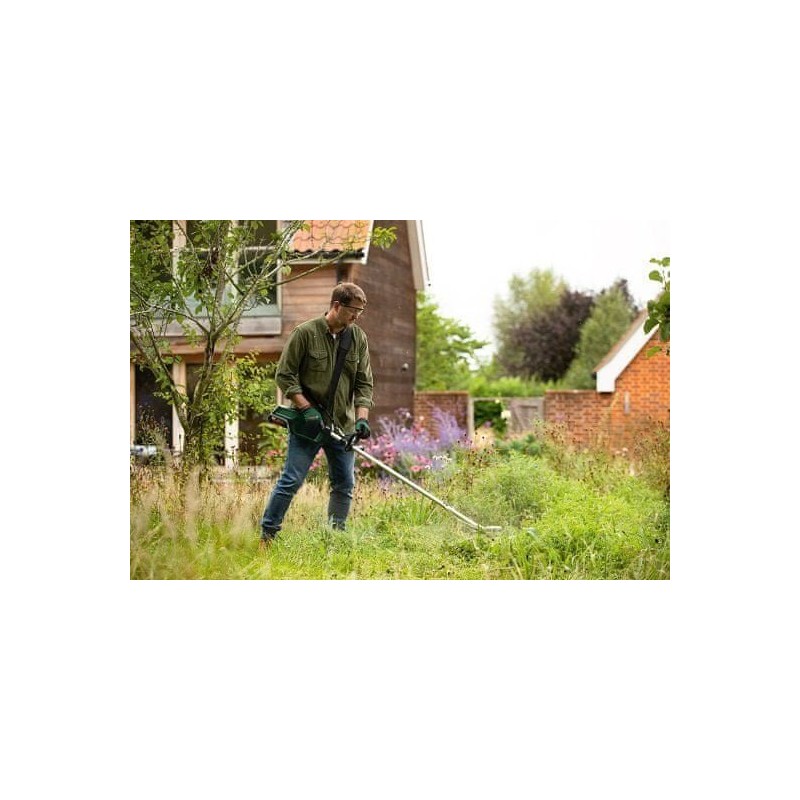 Elektryczny model PowerCut 36V-33 wyposażony w wysoce wydajny silnik bezszczotkowy umożliwia szybkie koszenie wysokiej trawy, chwastów lub pokrzyw. Technologia Constant Electronic automatycznie dopasowuje moc narzędzia do aktualnie wykonywanego zadania, utrzymując przy tym prędkość pracy. Ergonomiczna konstrukcja i łatwa obsługa ułatwiają wykonanie bardziej czasochłonnych prac związanych z koszeniem, a ochrona przed zamknięciem przypadkowym chroni cenne drzewa i rośliny przed przypadkowym uszkodzeniem. Narzędzie jest częścią systemu 36V POWER FOR ALL. Możliwość zastosowania jednego akumulatora do wszystkich elektronarzędzi 36V POWER FOR ALL.