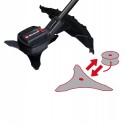 Kosa akumulatorowa Einhell GP-BC 36/430 Li BL-Solo została zaprojektowana z myślą o łatwej wymianie ostrzy. System blokady wrzeciona umożliwia szybkie przełączanie między bębnem z żyłką o szerokości cięcia 43 cm a ostrzem metalowym o szerokości 25,5 cm, co pozwala na dostosowanie narzędzia do różnych zadań.