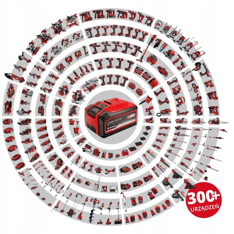 Kosa korzysta z technologii Power X-Change, co oznacza, że akumulatory są wymienne z innymi narzędziami marki Einhell. To rozwiązanie zapewnia wygodę i oszczędność, umożliwiając korzystanie z jednego akumulatora do różnych urządzeń.