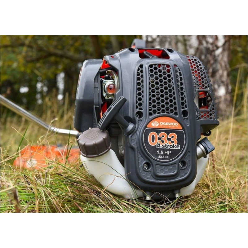 Kosa spalinowa DABC 4ST została wyposażona w niezawodny silnik czterosuwowy o wydłużonej żywotności. Cechuje go niższy niż w silnikach dwusuwowych poziom hałasu i wibracji. System Easy Start pozwala na szybki i łatwy rozruch.