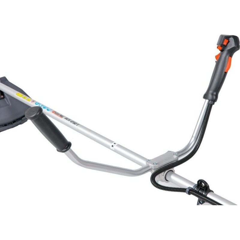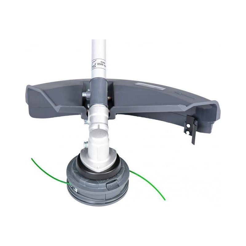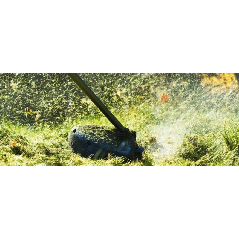 - Głowica tnąca to nowa wersja niezawodnej głowicy żyłkowej “Tap & Go” wyposażonej w nylonową żyłkę 2,4mm, której długość można łatwo zwiększyć poprzez uderzenie wirującą głowicą w podłoże podczas cięcia trawy, co pozwala na nieprzerwaną pracę.