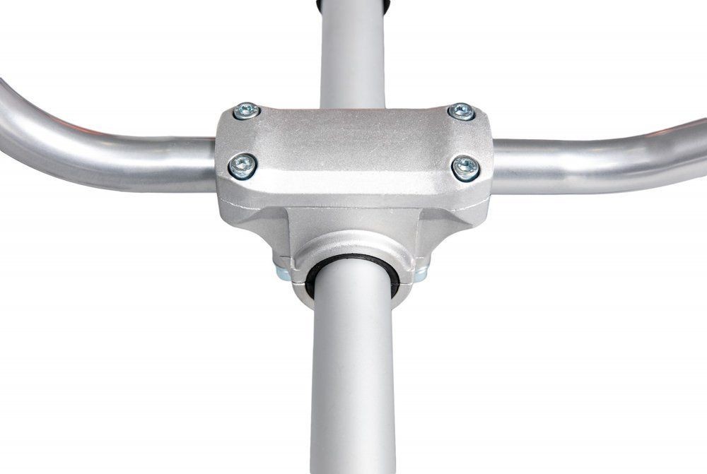 - Aluminiowa osłona wału o średnicy fi 26 mm, sztywny 8-milimetrowy wałek napędowy oraz aluminiowa przekładnia kątowa z trzpieniem gwintowanym M10.
