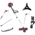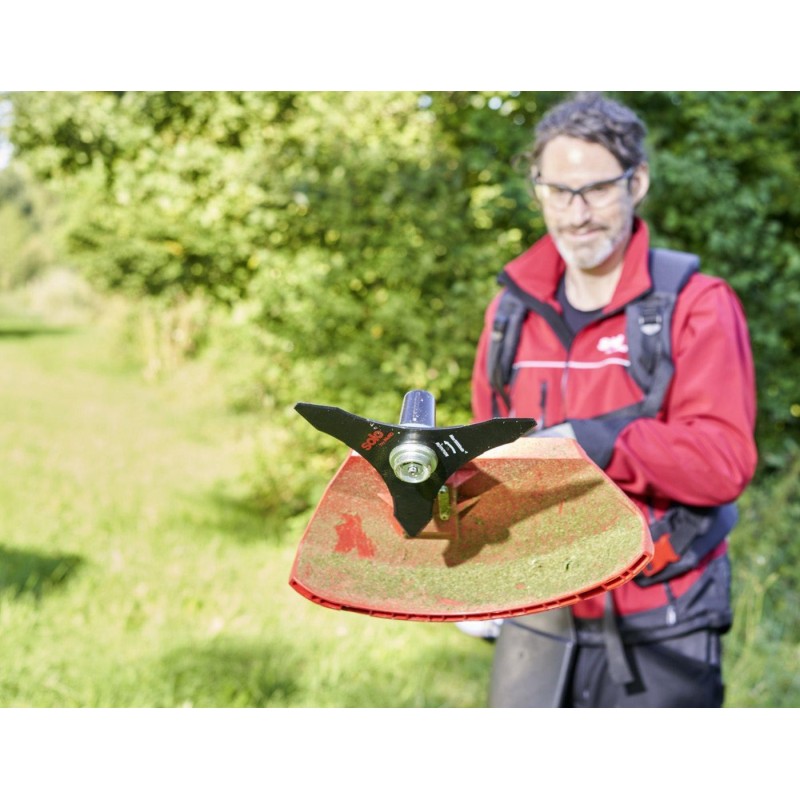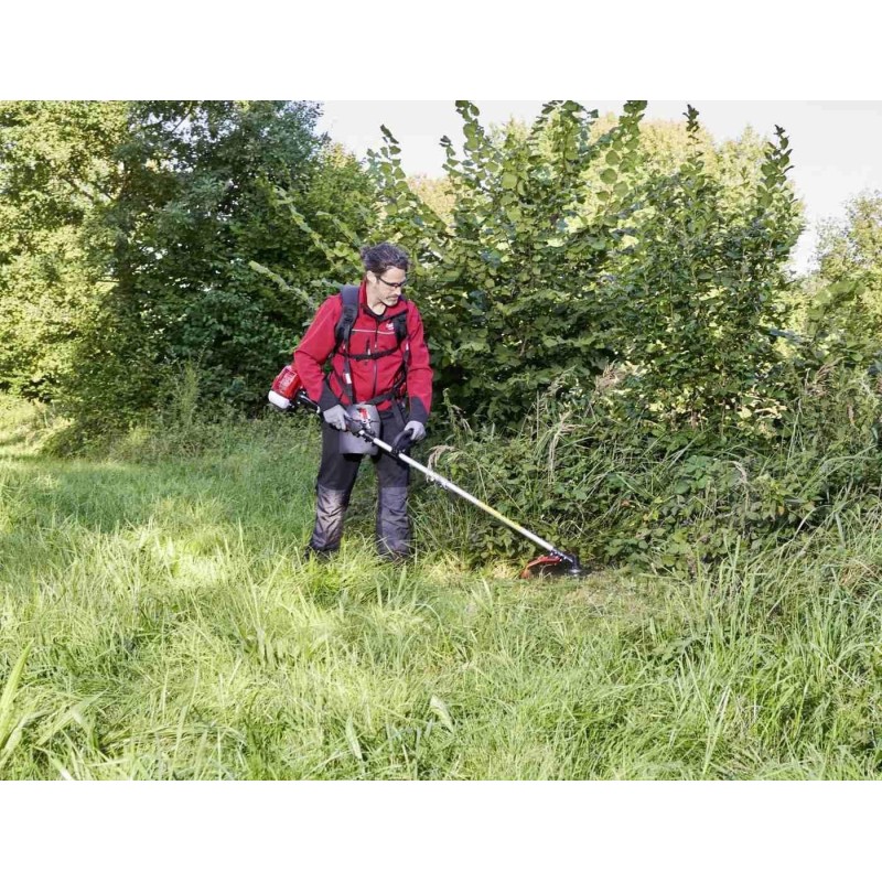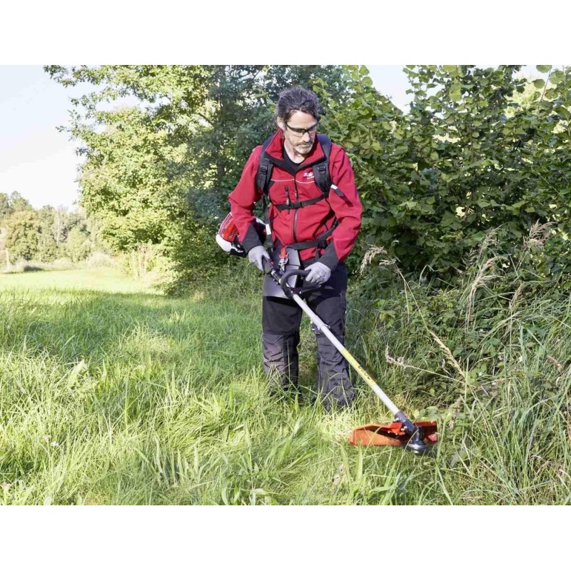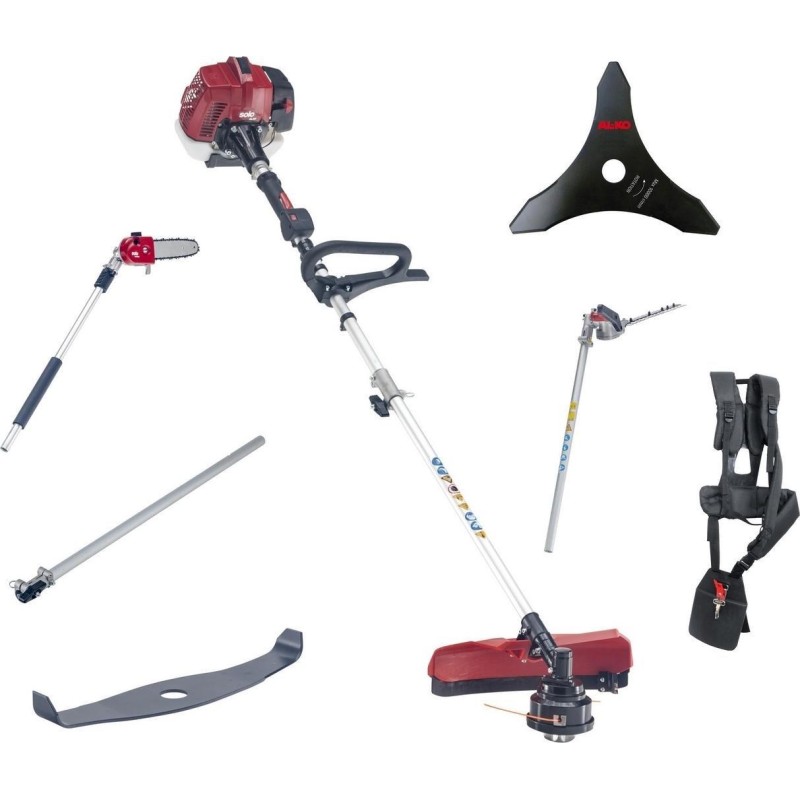 Typ silnika: spalinowy, dwusuwowy. Producent silnika: AL-KO. Pojemność silnika: 30 cm3. Znamionowa moc silnika: 0,9 kW. Mieszanka paliwowa (paliwo:olej): 40:1. Średnica koszenia głowicą żyłkową: 410 mm. Rodzaj głowicy: podwójna żyłka. Średnica koszenia tarczą: 250 mm. Rodzaj tarczy: trójzębna. Długość ostrza tnącego: 600 mm. Długość prowadnicy: 250 mm. Uchwyt: typu pętla. Uchwyt antywibracyjny: tak. Rura prowadząca: dzielona. Uprząż robocza: profesjonalne szelki.