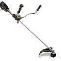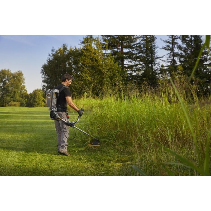 Kosa SBC 900 D AE zapewnia wydajność kosy spalinowej o pojemności 45 cm3 - bez kłopotów związanych z tankowaniem i emisjami. Dwa akumulatory 48 V 7,5 Ah zapewniają 1,5 godziny ciągłego cięcia. A ponieważ są one trzymane w wygodnym plecaku, uzyskujesz optymalną równowagę mocy i wagi. Od dużych ogrodów i farm po parki miejskie, gdziekolwiek pracujesz, ergonomiczna konstrukcja podwójnej kierownicy i kompaktowa osłona ułatwiają koszenie wysokiej trawy lub gęstej roślinności. Dla ułatwienia kontroli na kierownicy z miękkim uchwytem znajdują się cztery zintegrowane diody LED do monitorowania poziomu naładowania akumulatora. Szerokość cięcia 43 cm jest również wyposażona w system Bump & Work do szybkiego podawania żyłki głowicy tnącej. Po zakończeniu pracy uchwyt można złożyć pod kątem 90 °, aby ułatwić transport i przechowywanie.