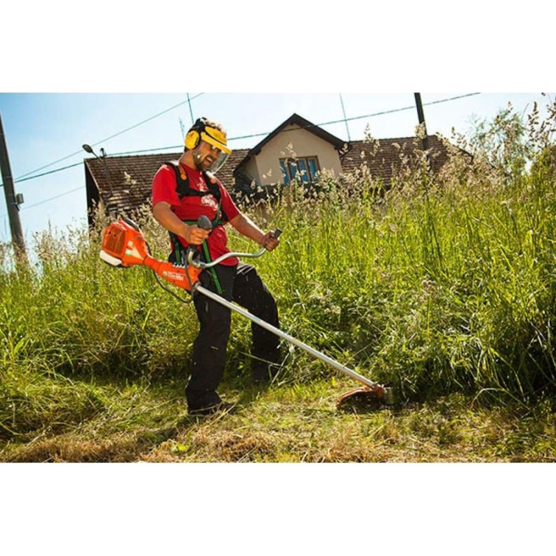 PROFESJONALNA KOSA SPALINOWA OLEO MAC BC 550 MASTER PROFI - WYKASZARKA DO TRAWY PODKASZARKA PODCINARKA - Model do zastosowań profesjonalnych do prac przy wycinaniu chwastów, krzewów i ściółki czy cięciu drobnych gałęzi. Maszyny godne użytkowników profesjonalnych, lecz przeznaczone dla wszystkich. Kosa posiada na wyposażeniu tarcze z 3 zębami przeznaczone specjalnie do prac przy ściółce. Silnik o pojemności 51,7 cm3 i mocy 3,7 KM (2,7 kW), charakteryzujący się wysokim momentem obrotowym również przy niskich prędkościach obrotowych. Innowacyjna głowica Load&Go o średnicy 130 mm z żyłką o średnicy 3 mm: zapewnia wyjątkowo łatwe i szybkie uzupełnianie żyłki - jej nawinięcie zajmuje zaledwie 20 sekund, po czym można wznowić pracę. Silniki generują wysoki, stały moment obrotowy nawet w niskim zakresie prędkości obrotowej wału.