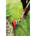 Precyzja podkaszania w każdej pozycji. Teleskopowa, aluminiowa rura prowadząca z regulowanym uchwytem. Głowica z regulacją kąta nachylenia.