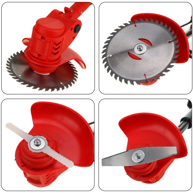 Regulacja kąta nachylenia oraz dwa systemy tnące (tarcza i nożyki) pozwalają na precyzyjne docinanie trawy w trudno dostępnych miejscach, takich jak okolice drzew czy płotów. Dodatkowo, zamontowane koła ułatwiają prowadzenie urządzenia, co zwiększa komfort pracy.