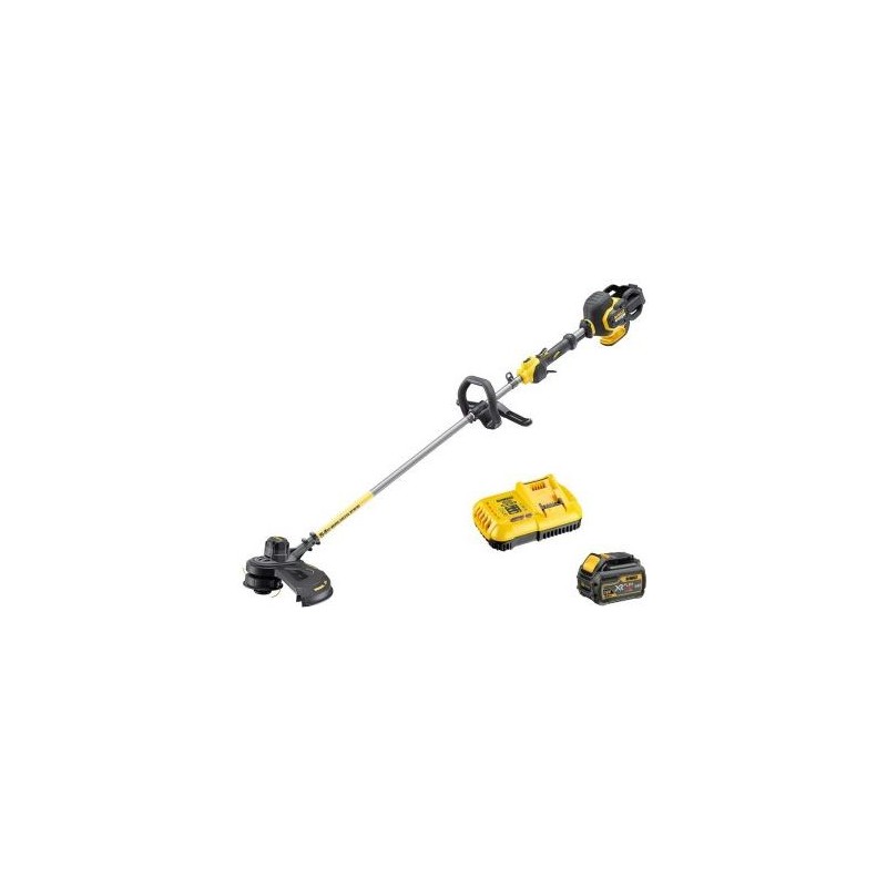 Akumulatorowa, 2 biegowa podkaszarka do trawy z nowej serii FlexVolt 54V firmy DeWalt [DCM571X1] wyposażona w 1 akumulatory Li-Ion DCB547 o pojemności 9,0Ah o napięciu roboczym 54V, szybką ładowarkę DCB118. Całość pakowana w kartonie;