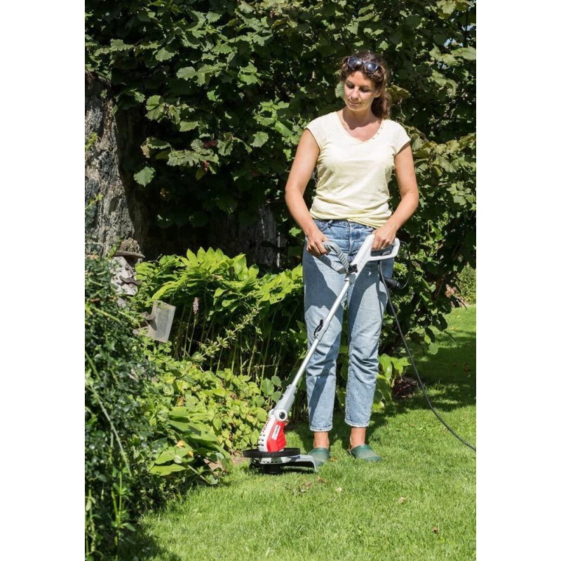 Uniwersalna kosa elektryczna marki IKRA do wymagających prac przydomowych. Silnik o mocy 600W. Wykaszarka przeznaczona jest do podcinania trawy i chwastów w miejscach trudno dostępnych dla kosiarek,np: w pobliżu ścian budynków, ogrodzeń, wokół drzew i krzewów, krawędzi ścieżek itp. Urządzenie jest poręczne, posiada regulowany uchwyt i możliwość zmiany kąta głowicy, co znacząco wpływa na komfort pracy.