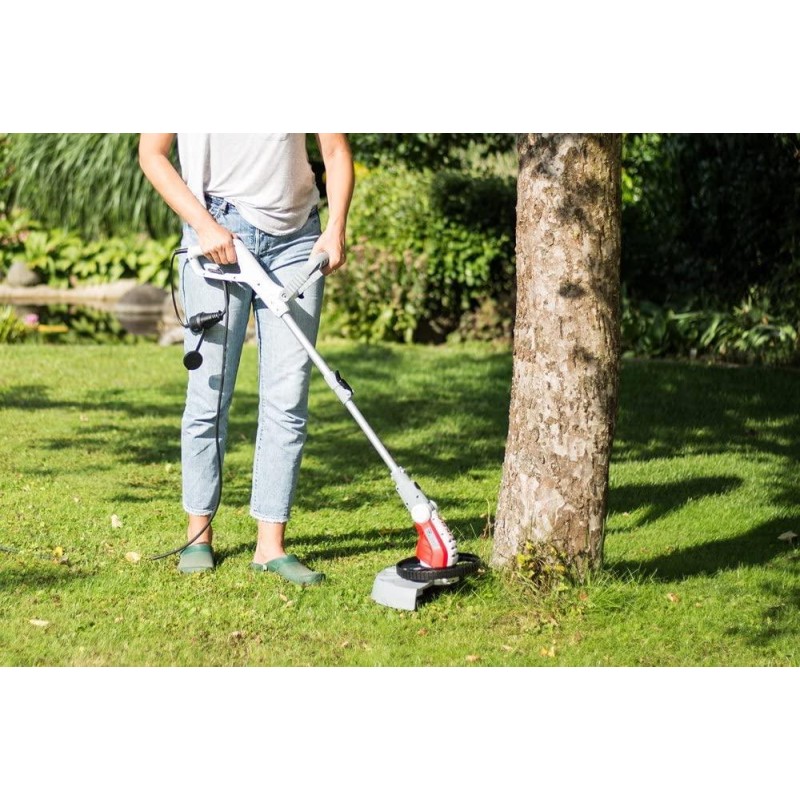 - Poradzi sobie z pracą w miejscach niedostępnych dla kosiarki: przy ścieżkach, ogrodzeniach, wokół drzew, krzewów itp.