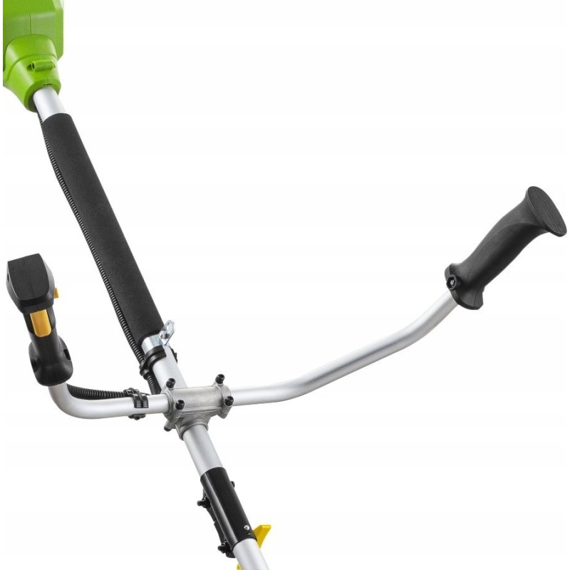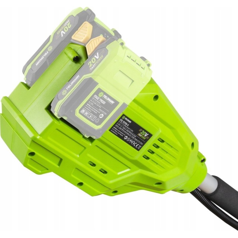 Silnik umieszczony w głowicy kosiarki na akumulator Fieldmann FZS 70705-0 równoważy akumulatory na końcu korbowodu, co sprawia, że kosiarka jest łatwa w obsłudze. Miękka rączka i ergonomiczne uchwyty. Zasięg wynoszący 38 cm w połączeniu z dwoma bateriami 20 V zapewnia doskonałą wydajność. W zestawie znajduje się głowica z nylonowym strunowym koszem tnącym i stalową tarczą trójzębną