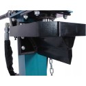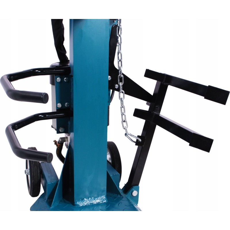 Łuparka wyposażona jest w pneumatyczne koła, które ułatwiają przemieszczanie nawet po nierównych powierzchniach, takich jak żwir czy ziemia.