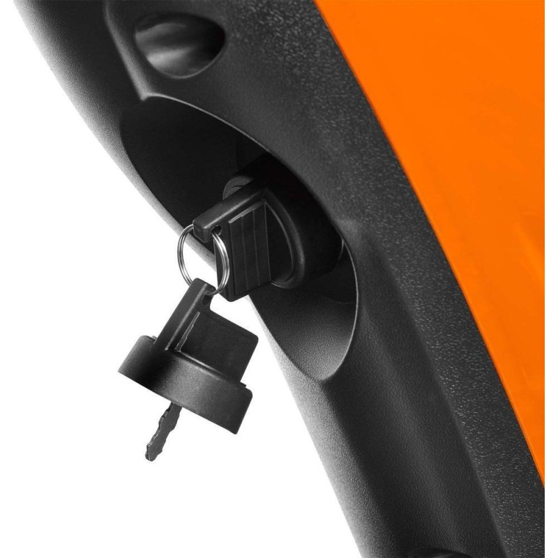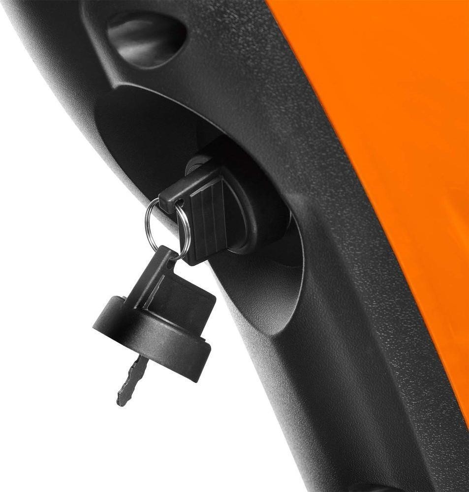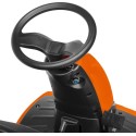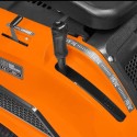 Traktorek ogrodowy DAEWOO DWR 620 to wydajny sprzęt z silnikiem Daewoo 225 V-series o mocy 5,7 KM. traktorek wyposażony jest w centralną regulacje wysokości koszenia regulowaną w zakresie od 30 do 90mm, co pozwala na idealne dostosowanie wysokości koszenia trawy w zależności od upodobań. Wysokość koszenia reguluje się dźwignią dostępna z fotela operatora urządzenia. Kosiarka- Traktor Traktorek spalinowy DAEWOO DWR 620 posiada dwa tryby koszenia: wyrzut tylny do kosza i wyrzut tylny bez kosza, pojemność kosza to aż 130 litrów. Waga traktorka to 125kg. Urządzenie wyposażono w solidną, stalową obudowe zespołu koszącego z powłoką antykorozyjną. Posiada mechaniczną skrzynie biegów (4 biegi do przodu / 1 bieg wsteczny) oraz rozruch elektryczny. Szerokość koszenia wynosi: 62 cm.