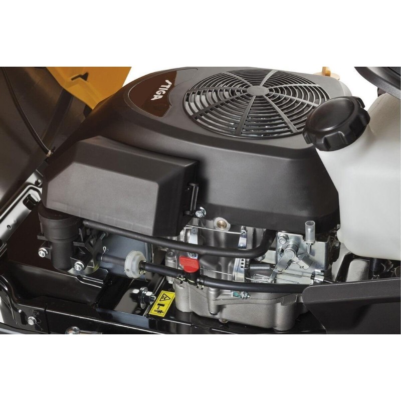 Traktor STIGA Tornado 398 M jest przeznaczony dla tych, którzy chcą kosić w trybie wyrzutu bocznego lub mulczowania. Ten traktor ogrodowy charakteryzuje się atrakcyjnym, nowoczesnym wyglądem. Jest wyposażony w silnik STIGA o mocy netto 6,5 kW przy 2800 obr./min. Tornado 398 M wyposażono w przekładnię manualną, agregat koszący o szerokości 98 cm, 2 noże i 2 koła zapobiegające skalpowaniu trawnika. Wysokość koszenia można regulować, ustawiając 1 z 7 pozycji (w zakresie od 25 do 80 mm) przy użyciu dźwigni znajdującej się obok fotela.