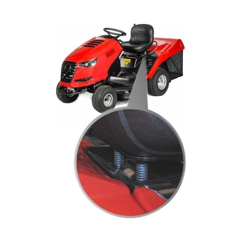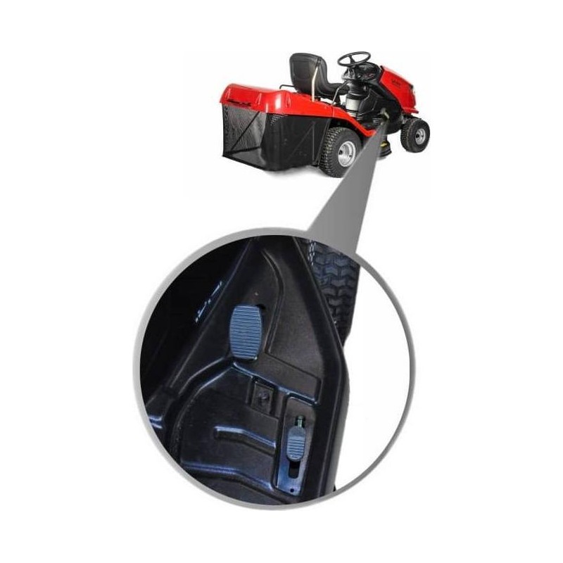 Traktorek ogrodowy jest przystosowany do pracy w różnych warunkach przez cały rok, dzięki czemu jego zastosowanie jest poszerzone. Traktor posiada duży kosz na trawę o pojemności 300 L, co zmniejsza częstotliwość opróżniania. Silnik benzynowy Loncin LC1P92F-1 o pojemności 452 m3 to jednocylindrowa jednostka napędowa, która zapewni długotrwałą i bezawaryjną pracę przez kilka lat. Całkowita waga traktorka to zaledwie 226 kg, jest to odpowiednie zestawienie wagi w przeliczeniu na moc, dzięki czemu silnik nie jest nadmiernie obiążony, zapewnia dynamikę pracy, a jednocześnie spełnia wszystkie parametry jakościowe. Wysokość koszenia jest centralnie regulowana w 7 pozycjach w zakresie 30-90 mm. Do traktorka można zamontować koła 15 x 6 z przodu i 18 x 8,50 z tyłu.