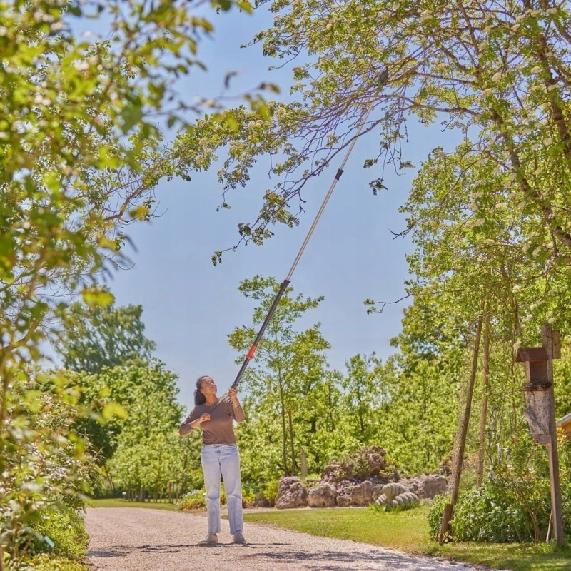 Gardena StarCut Pro L to nowoczesne teleskopowe nożyce do gałęzi, które łączą funkcjonalność z wygodą użytkowania. Dzięki zasięgowi roboczemu od 175 cm do 400 cm, te nożyce pozwalają na sięgnięcie do wysokości aż 6,5 m, co czyni je idealnym narzędziem do pielęgnacji drzew i krzewów w ogrodzie.