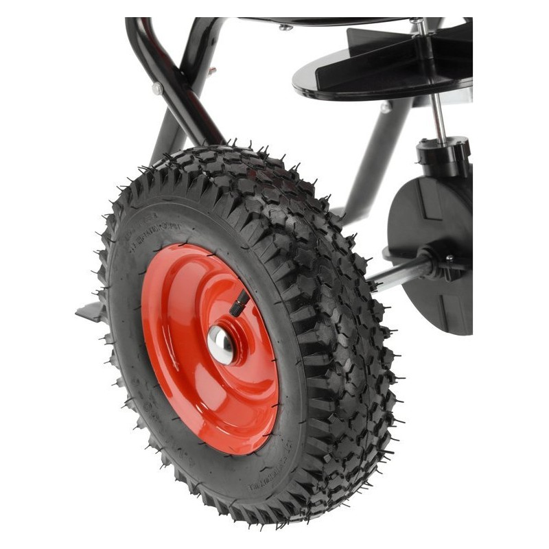 Odkrywka ogrodowa obrotowa do rozrzucania nawozów, soli przemysłowych, piasku itp. W czasie lata może być stosowana do siania nasion traw na dużych i średnich powierzchniach. Miękki uchwyt i koła pneumatyczne sprawiają, że praca jest łatwa i komfortowa. Regulacja dozowania za pomocą dźwigni na uchwycie. W zestawie sito oraz pokrowiec.