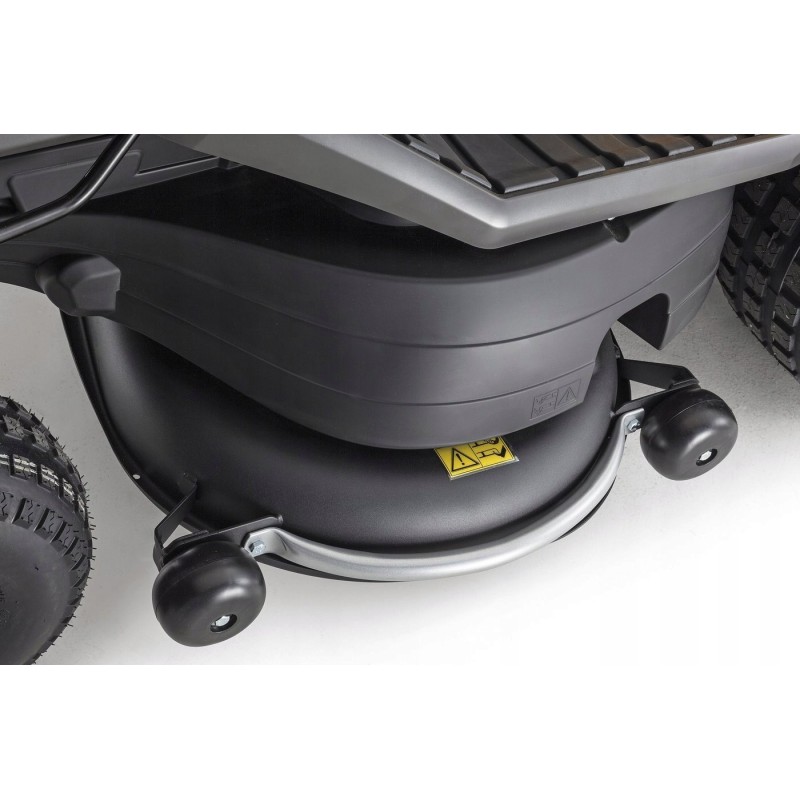 System mycia obudowy umożliwia szybkie czyszczenie spodu kosiarki, co zwiększa jej trwałość i ułatwia konserwację. Dzięki temu, użytkownik może cieszyć się długotrwałym użytkowaniem traktora w doskonałym stanie.