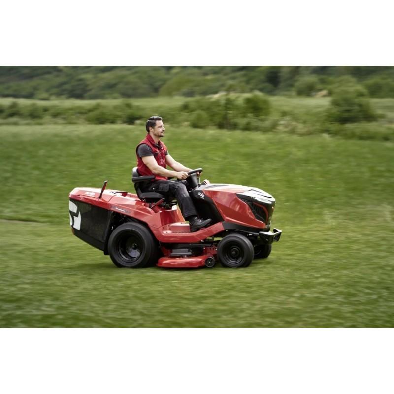 AL-KO Traktor ogrodowy T 24-125.4 HD V2 miesza za pomocą przekładni hydrostatycznej, której cicha praca zadowoli nawet najbardziej wymagających użytkowników. Przede wszystkim jest to cicha jednostka charakteryzująca się płynnym działaniem. Nowy model traktora ma również zoptymalizowany układ napędowy, co poprawia wydajność maszyny i umożliwia osiąganie większych prędkości (14 km/h). Poprawiona przekładnia pasa napędowego skutecznie i efektywnie przekazuje zwiększoną moc na tylną oś. Oznacza to nie tylko szybszą jazdę, ale także szybsze koszenie – dla maksymalnej wydajności. Skrzynia biegów działa tak samo jak te używane w samochodach. Prędkość można regulować dwoma pedałami, które są obok siebie. Gdy naciskamy mocniej na pedał, przyspieszamy, a gdy odpuszczamy, zwalniamy.
