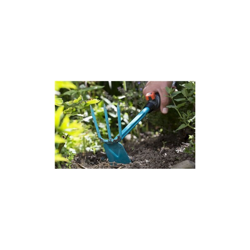 GARDENA combisystem – motyczka prosta to idealne narzędzie do spulchniania, napowietrzania oraz pielenia gleby. Ergonomiczne rękojeści z miękkimi i antypoślizgowymi elementami zapewniają wygodną i komfortową pracę. Motyczka ma szerokość 6.5 cm – z jednej strony posiada proste ostrze, z drugiej trzy zęby. Jest wykonana z wysokiej jakości stali pokrytej duroplastem, co zapewnia wysoką trwałość produktu. Motyczka pasuje do wszystkich trzonków combisystem. 25 lat gwarancji.