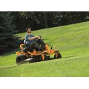 Kosiarka o szerokości pracy aż 107 cm, dwunożowy system tnący i łatwe sterowanie zapewniają szybką pracę wśród licznych przeszkód i wąskich powierzchniach. Bardzo ważną zaletą kosiarek o zerowym promieniu skrętu jest niskie położenie środka ciężkości, które w połączeniu z szerokimi oponami i ciężkim układem roboczym gwarantuje doskonałą przyczepność i pewność pracy w trudnym terenie.