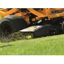 Kosiarka posiada odporną na uderzenia i płowienie karoserię, która zawsze będzie wyglądała jak nowa. Dodatkowo, ciężka i solidna przednia oś oraz szerokie opony gwarantują doskonałą stabilność maszyny nawet w najtrudniejszych warunkach.