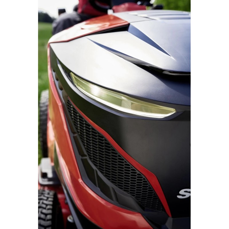 AL-KO Traktor Ogrodowy T 22-105.4 HD V2 SD otrzymał odświeżony desing, dzięki temu zabiegowi jego look stał się jeszcze bardziej drapieżny. Widząc traktorek wiemy, że mamy doczynienia z profesjonalną maszyną ogrodową. Szczególnie efektownie wypada system oświetlenia LED ze świecącymi paskami ledowymi.