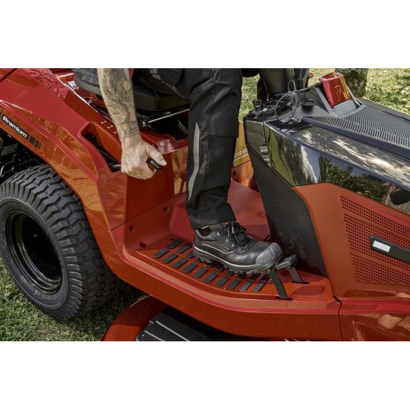 Niezawodny traktorek kosiarka z automatyczną skrzynią hydro i dwucylindrowym, amerykańskim silnikiem Briggs&Stratton o dużej mocy aż 11,7 kW i pojemności 656 cm3. Traktor posiada funkcję zbierania skoszonej trawy do dużego kosza 310 litrów, funkcję mielenia, a szerokość pracy wynosi aż 105 cm. Dodatkowo w standardzie posiada system SMART COCKPIT, przednie światła LED oraz przedni zderzak.