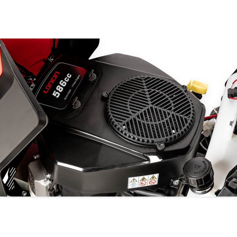 Traktorek napędzany jest silnikiem Loncin LC2P73F o pojemności 586 cm³ i mocy 17 KM. Taki silnik zapewnia niezawodność oraz wydajność w różnych warunkach, co czyni go idealnym narzędziem do pielęgnacji ogrodów.