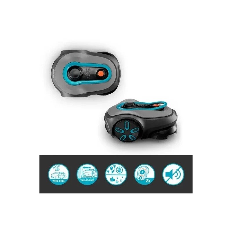 Robot koszący Gardena jest wyposażony w czujniki kolizji, które chronią zarówno urządzenie, jak i otoczenie przed uszkodzeniami. W zestawie znajduje się również stacja ładująca oraz inteligentna brama (smart Gateway), co umożliwia pełne wykorzystanie funkcji smart.