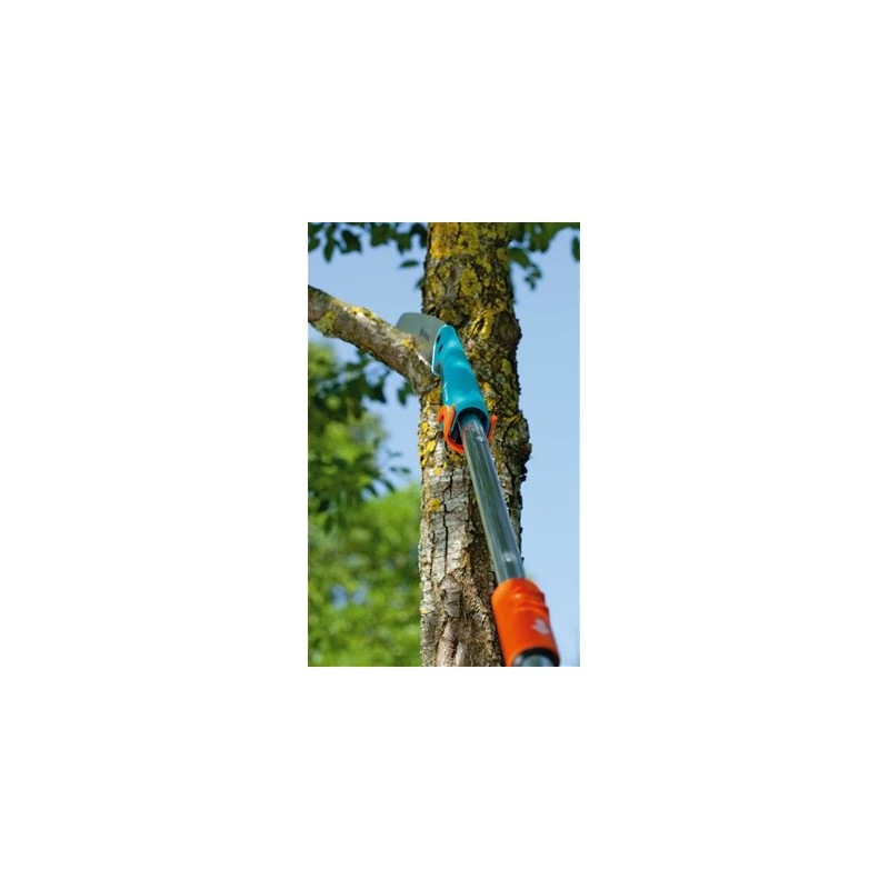 - W celu usunięcia gałęzi położonych wysoko można zastosować trzonek teleskopowy, który zwiększa zasięg do 5 m.