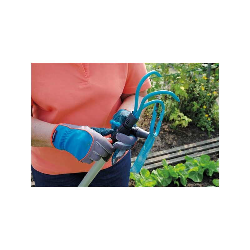- GARDENA combisystem - kultywator ma trzy haczykowato zagięte zęby i jest idealnie dostosowany do łatwego spulchniania lekkiej i średnio ciężkiej gleby.