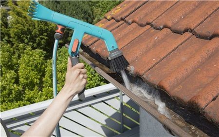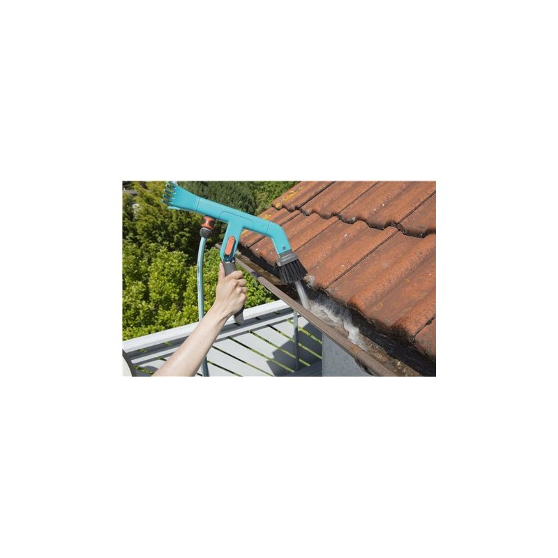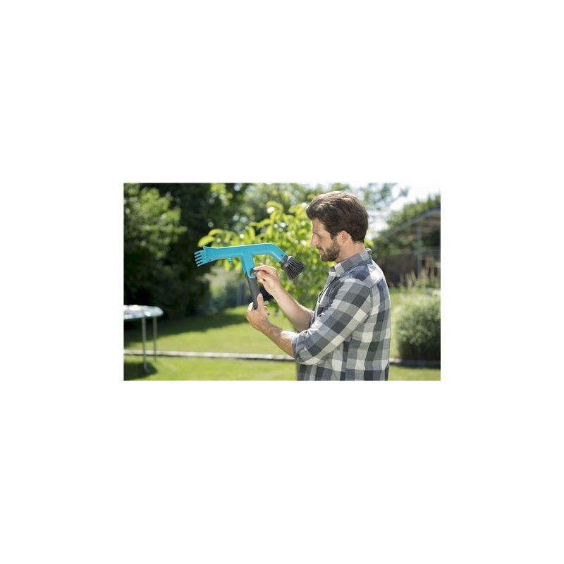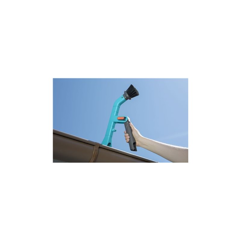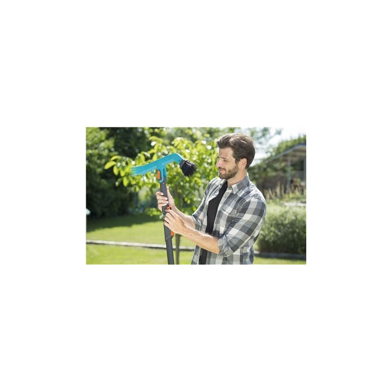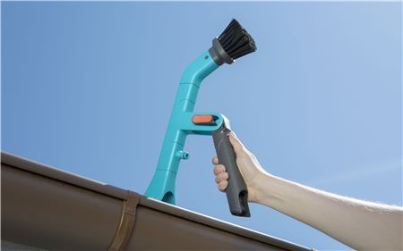 Przyrząd do czyszczenia rynien dachowych GARDENA combisystem jest optymalnie przystosowany do łatwego czyszczenia rynien. Sprężyste włosie z jednej strony i dwie solidne skrobaczki z wytrzymałego tworzywa sztucznego z drugiej umożliwiają skuteczne czyszczenie. Uchwyt zapewnia prostą obsługę nawet bez trzonka. Do czyszczenia rynien można także użyć wody dzięki zintegrowanemu podłączeniu Original GARDENA System, które umożliwia proste podłączenie węża ogrodowego. Aby bez problemu sięgnąć do rynny, kąt pracy można ustawić indywidualnie za pomocą zapięcia zatrzaskowego. Przyrząd do czyszczenia rynien dachowych jest kompatybilny ze wszystkimi trzonkami GARDENA combisystem, ale w przypadku pracy na wysokości ok. 5 m zaleca się stosowanie trzonków teleskopowych. 25 lat gwarancji.