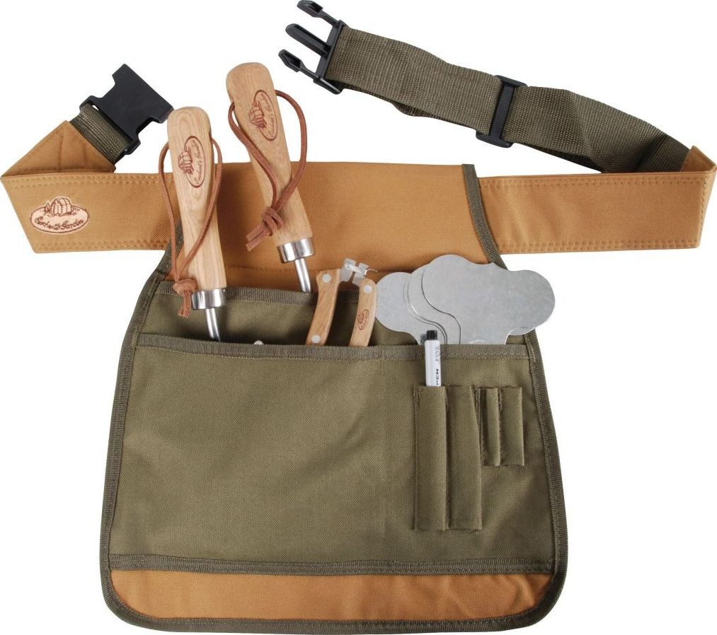 Wykonany z wytrzymałego płótna z podszewką z PVC pas wyposażony jest w liczne przestronne kieszenie do przechowywania narzędzi ogrodniczych.