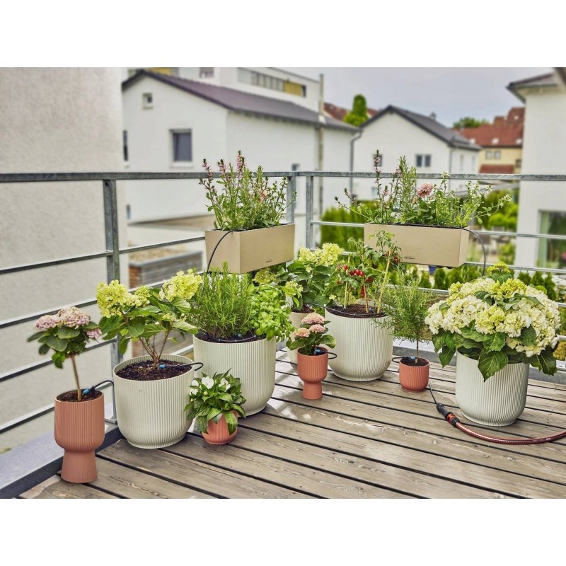 Bezawaryjnie dostarcza wodę do 15 pojedynczych roślin w doniczkach lub roślin w różnej wysokości naczyniach. Gotowy do użycia zestaw zawiera wszystkie potrzebne elementy i można go zainstalować w kilku prostych krokach.