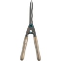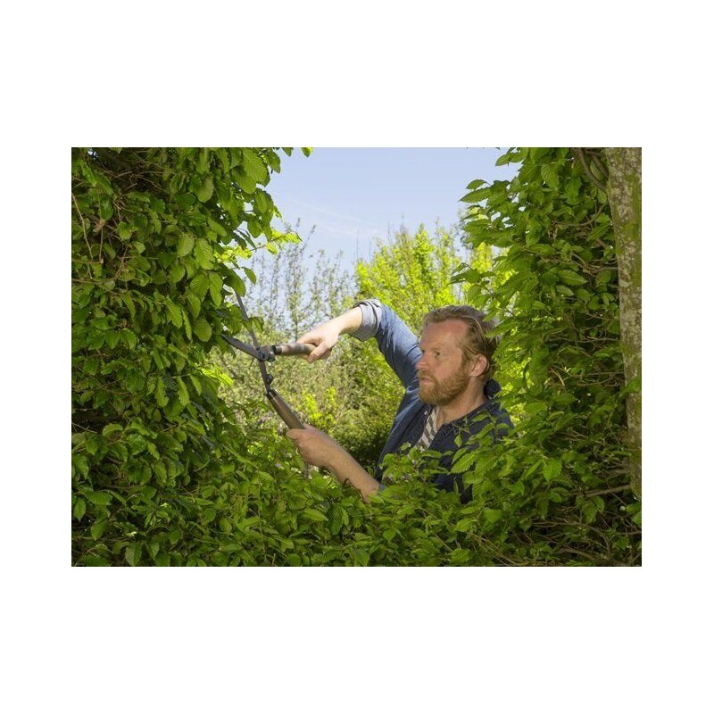 Nożyce do żywopłotu GARDENA NatureCut przekonują nowoczesnym wzornictwem, doskonałą siłą cięcia, ergonomicznym kształtem i niską wagą. Stabilne noże z ząbkowanym ostrzem i ergonomicznie ukształtowane drewniane rękojeści wykonane z europejskiego drewna bukowego z certyfikatem 100% FSC®, w połączeniu z idealnym kątem roboczym 20 °, zapewniają szczególnie wygodną pozycję podczas pracy. Zintegrowane zderzaki chronią nadgarstki. Rękojeść z drewna, podobnie jak wszystkie inne elementy przycinarki do żywopłotu NatureCut, jest szczególnie stabilna i trwała. Całkowita długość nożyc do żywopłotu wynosi 53,5 cm.