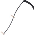 CechySzyja jest wyposażona w dwa krótkie drewniane uchwyty umieszczone pod kątem prostym, co zapewnia wygodny chwyt dla użytkowników o różnych wzrostach. W zestawie znajduje się kamień szlifierski, który umożliwia łatwe utrzymanie ostrości ostrza, co zapewnia gładkie i bezwysiłkowe cięcie.