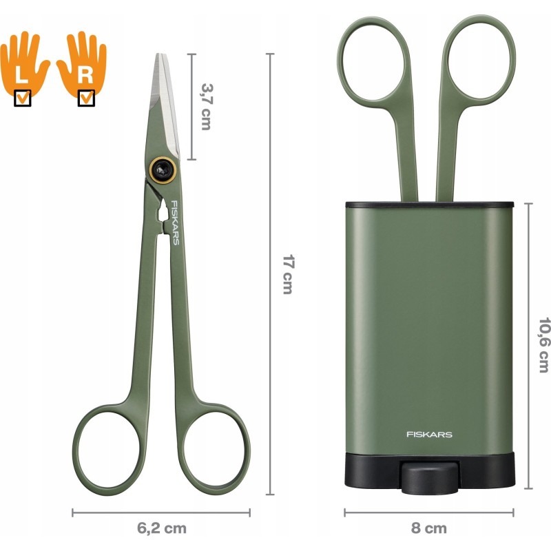 - Precyzyjne nożyczki Fiskars Plant Care z pojemnikiem są idealne do precyzyjnego przycinania roślin domowych, nawet w gęstym listowiu
