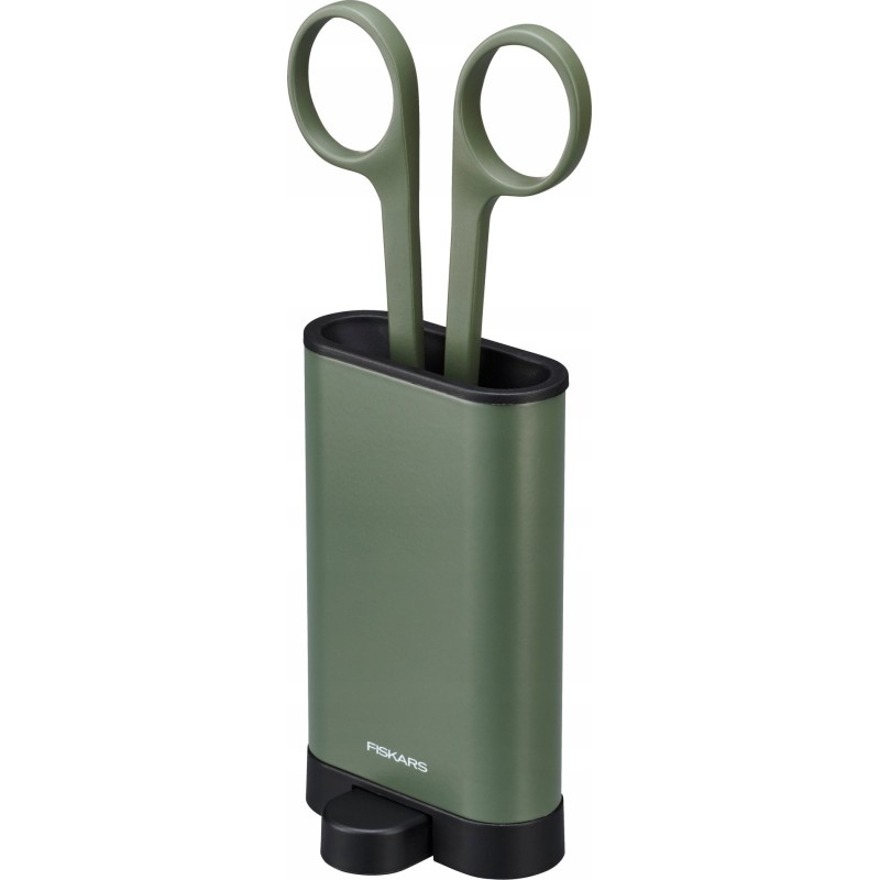 - Elegancki, wolnostojący pojemnik na nożyczki umożliwia wygodne przechowywanie.