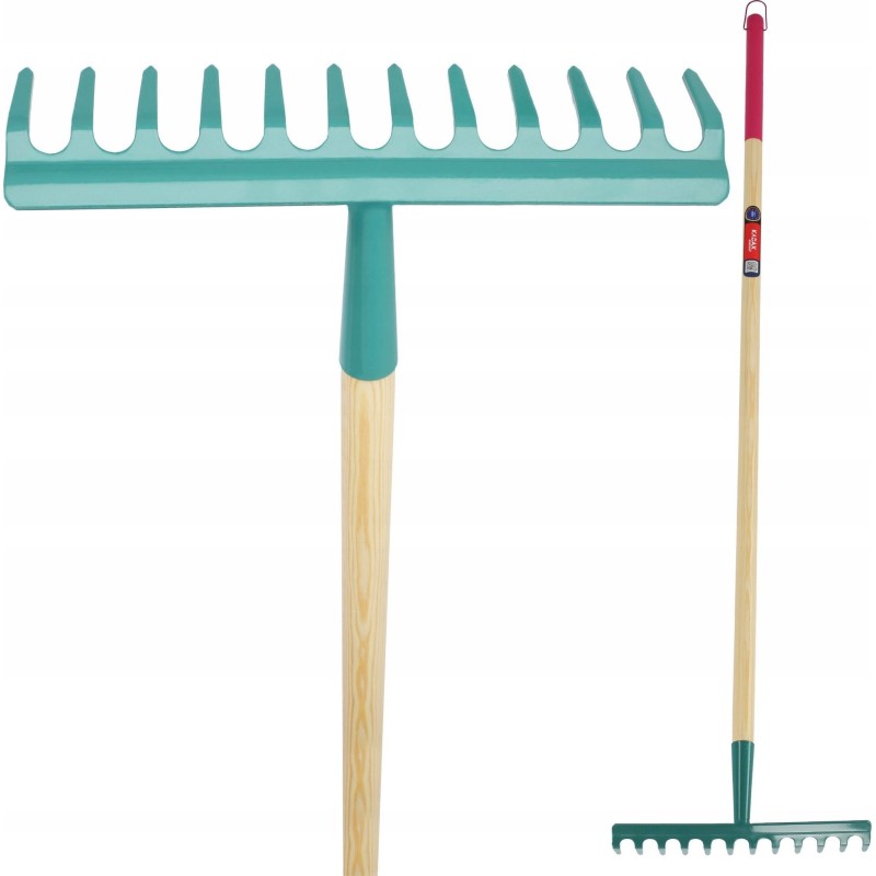 Doskonale sprawdzi się też po koszeniu trawy. Długie, dobrze wyprofilowane 12 zębów znacznie przyspieszą Ci pracę. Twarda głowica może też służyć do przydeptywania i przygładzania gleby. Co więcej, drewniany trzonek jest lekki, więc będziesz mogła nim sprawniej manewrować.