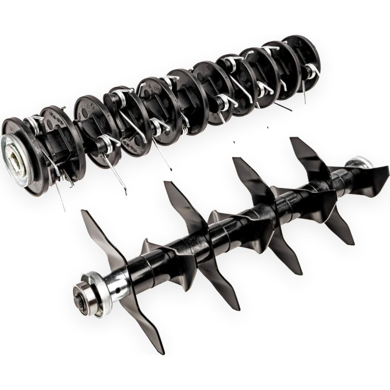 Wertykulator CEDRUS WE32 jest wyposażony w dwa wymienne wałki robocze: wałek wertykulatora z 16 stalowymi nożami oraz wałek aeratora z drutami stalowymi. Dzięki temu możesz łatwo dostosować urządzenie do specyficznych potrzeb swojego trawnika.