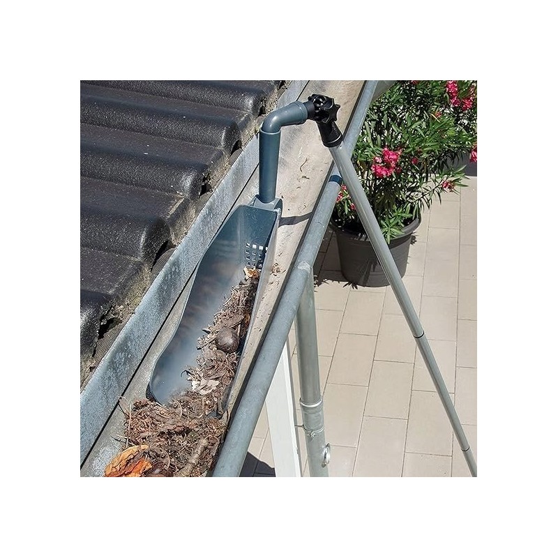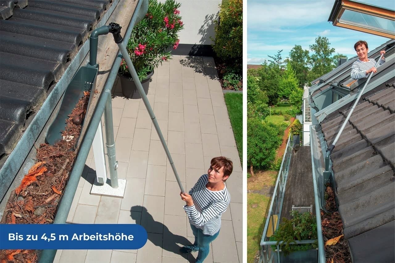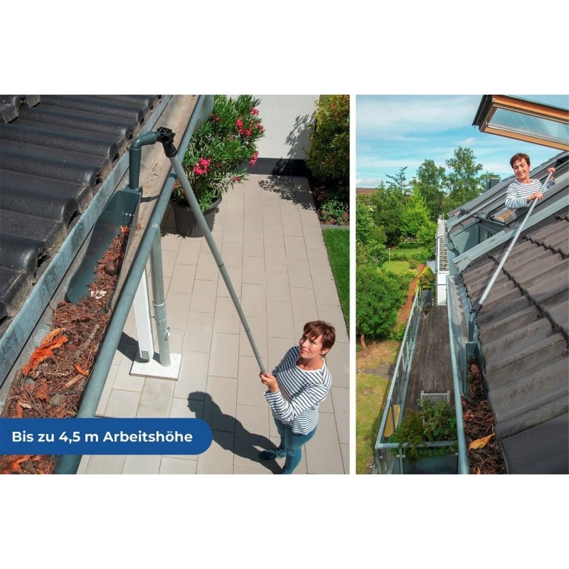 - Bezpieczna i wygodna praca: łopatka do czyszczenia rynny umożliwia łatwe usunięcie liści i zanieczyszczeń bez konieczności współczynników równoważenia na drabinie