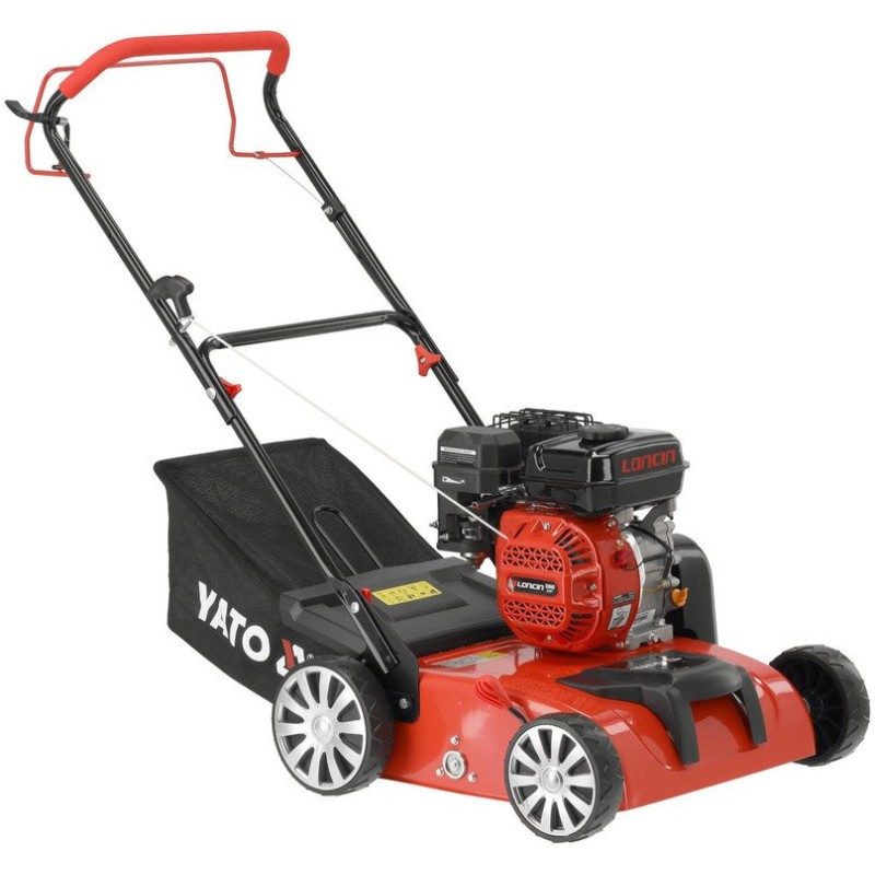 Wertykulator YT-85570 jest napędzany silnikiem spalinowym LONCIN o pojemności 196 cm³, który generuje moc 4100 W (5,58 KM). Taki silnik zapewnia nie tylko wysoką wydajność, ale również niezawodność w trakcie pracy, co czyni go doskonałym wyborem do intensywnego użytkowania w ogrodzie.