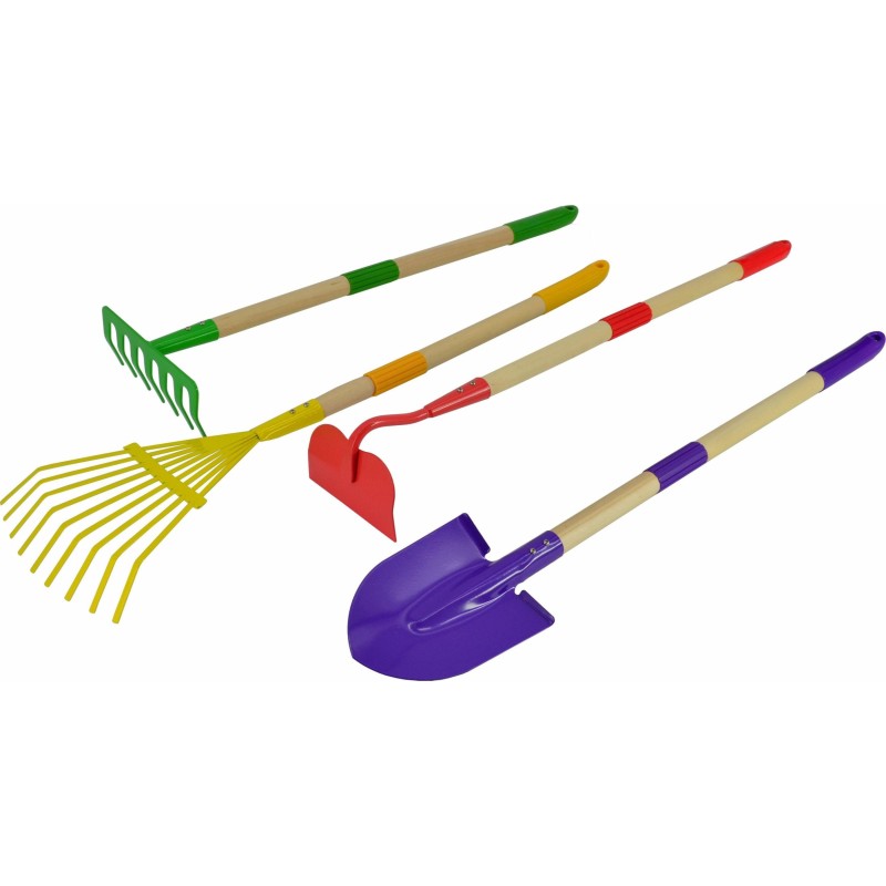 Wszystkie narzędzia są wykonane z drewnianego trzonka i metalowej końcówki.