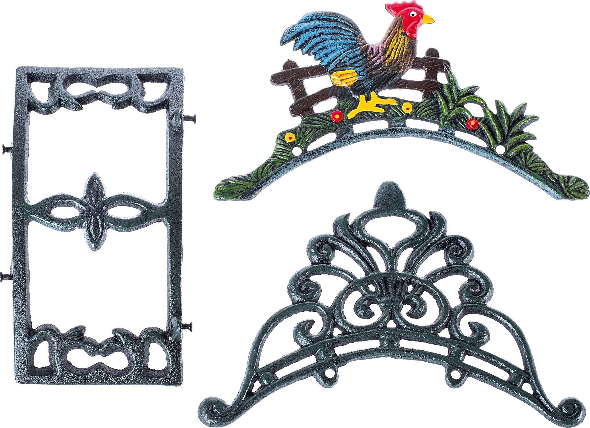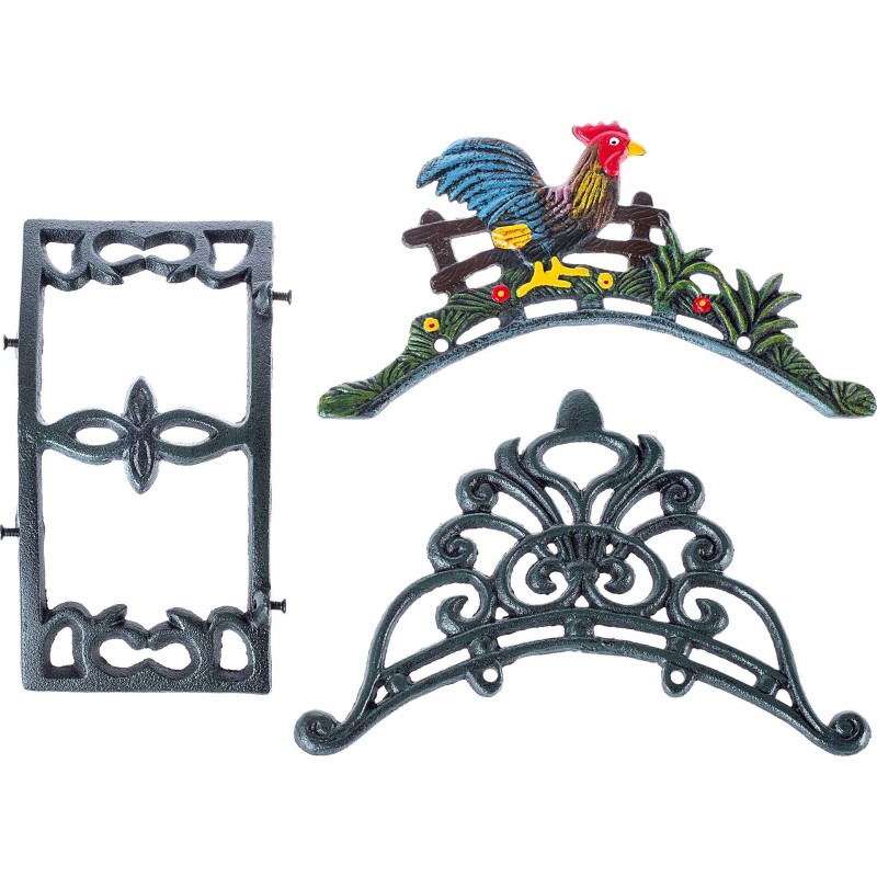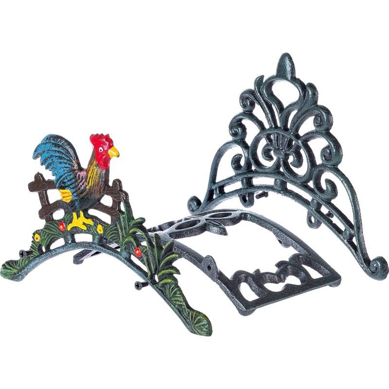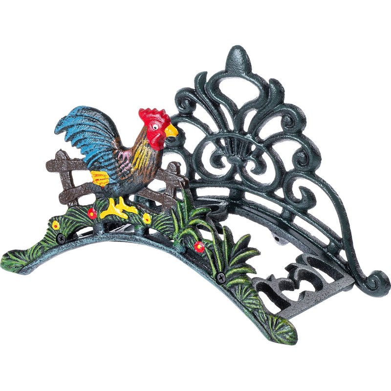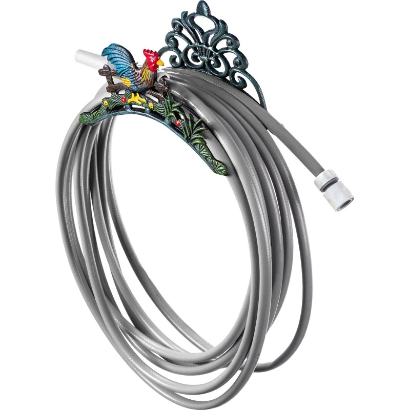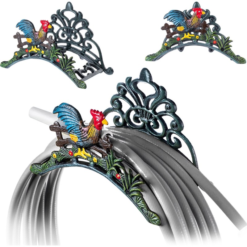 Wieszak na wąż ogrodowy żeliwny z dekoracyjnym motywem kury
